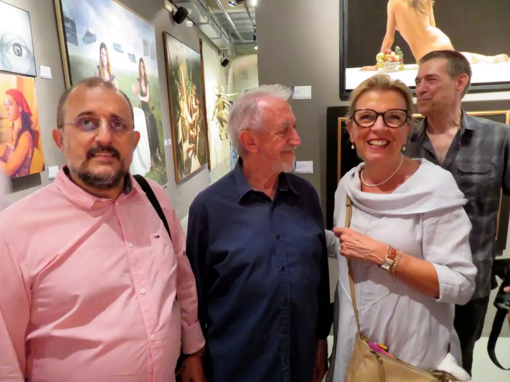 During opening Exhibition 20 x 20 of Galería ArteLibre at the MEAM Museum in Barcelona on July 12th 2019. With José Manuel Infiesta, director MEAM and José Enrique Gonzalez, director ArteLibre