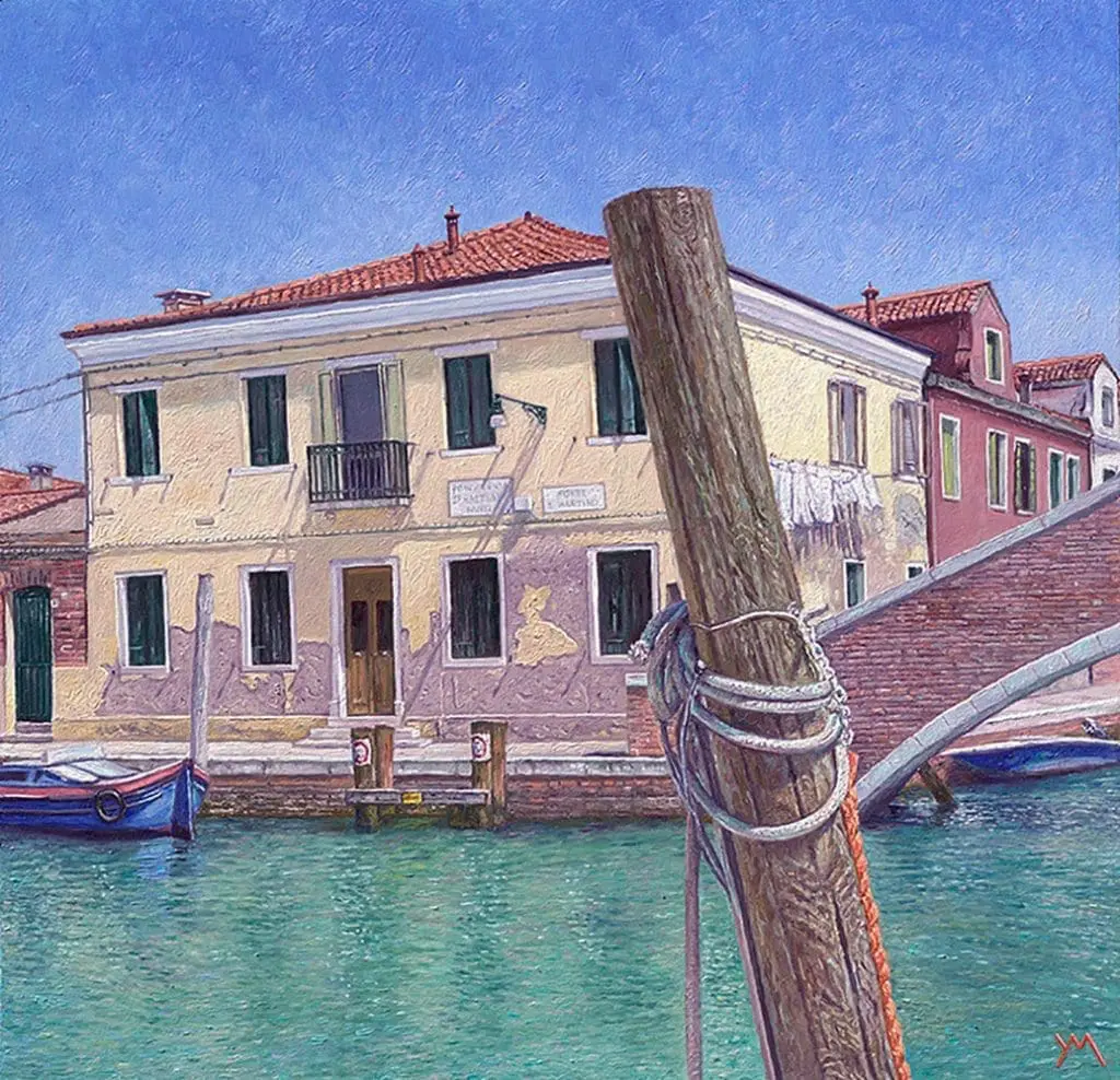 (Be)spiegelingen IV/Zomer in Venetië, olieverf op paneel 20 x 20 cm - beschikbaar -Een gedigitaliseerde versie van dit werk wordt gelanceerd naar de Maan, zie mijn nieuwsrubriek!